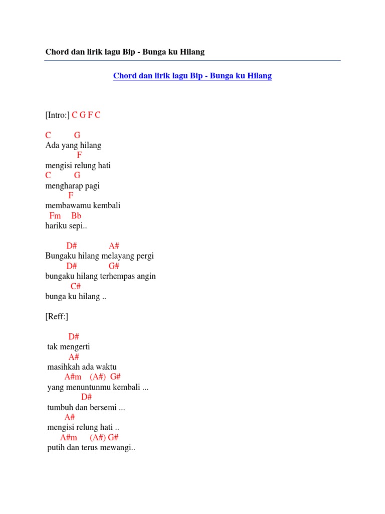 Chord Dan Lirik Lagu Bip Bunga Ku Hilang Pdf